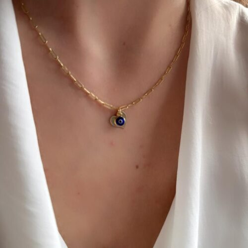925 Ayar Gold Ataç Zincir – Nazarlı Kalp Gümüş Kolye-Aşk Kolyesi