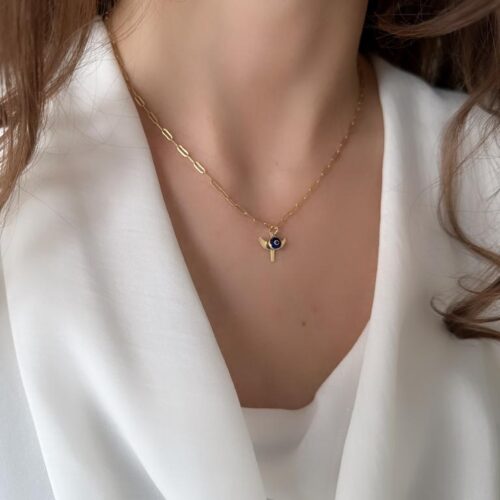 925 Ayar Gold Ataç Zincir Nazarlı Mikail Gümüş Kolye