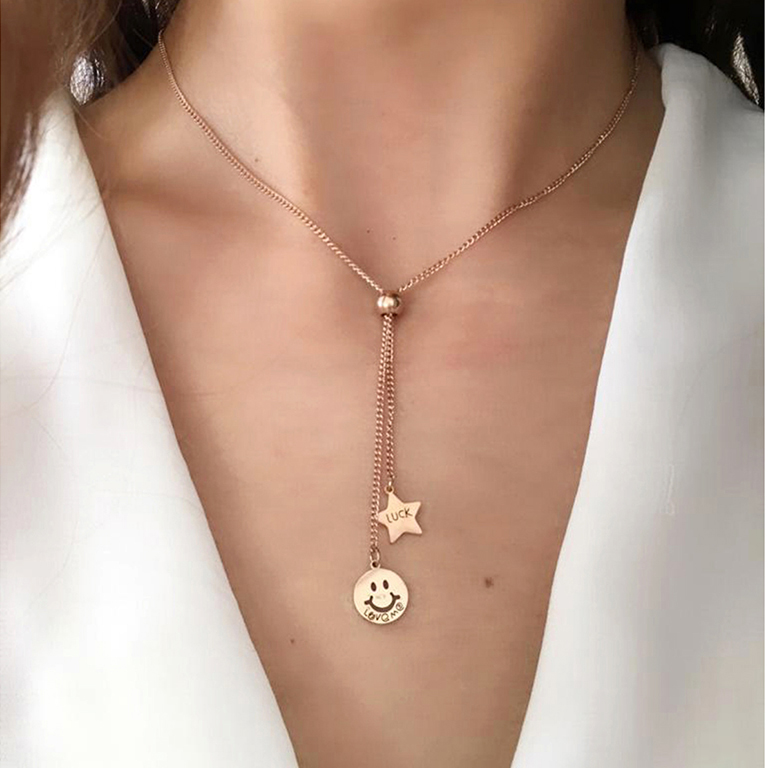 Asansörlü Gülen Yüz Çelik Kolye