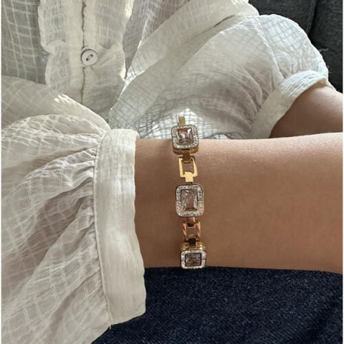 Gold Rengi Baget Tektaşlı Çelik Bileklik