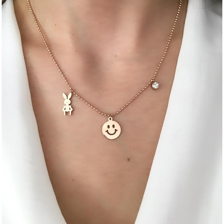 Rose Rengi Gülen Yüz Çelik Kolye